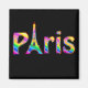 Un diseño tan divertido como el propio París. El texto de París en una vívida matriz de un arcoiris de colores con la "A" en París y un contorno de la Torre Eiffel.