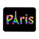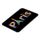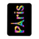 Un diseño tan divertido como el propio París. El texto de París en una vívida matriz de un arcoiris de colores con la "A" en París y un contorno de la Torre Eiffel.