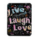 Un diseño inspirador y positivo con las palabras vivir, amar y reír. Genial por estar bien, cumpleaños, gracias y más.