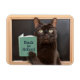 En el salón de clases con un libro en sus patas, este lindo gato con gafas es una manera humorística de desear a alguien un nuevo año escolar perfecto.