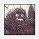 Un arbusto humorístico en el estacionamiento de una tienda Voodoo Donuts en el sureste de Portland, Oregón. Este arbusto tiene forma de su famosa "Muñeca Voodoo" con ojos y dientes. Soy un gran admirador de sus donuts, ¡y me encantó esta inteligente decoración de jardín!