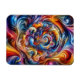 Esta imagen hipnotizante presenta un patrón de espiral abstracto vibrante e intrincado que mezcla una multitud de colores sin problemas entre sí. El azul profundo y el violeta se mezclan con rojos brillantes, naranjas, amarillos y verdes, creando un efecto giratorio que atrae la atención del espectador hacia el centro. El diseño dinámico y visualmente cautivador evoca un sentido de movimiento y profundidad, convirtiéndolo en una atractiva pieza de arte que capta la atención a través de su complejidad y vibrante paleta de colores.