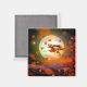 Imán de Halloween de una bruja que volaba sobre una espeluznante luna llena en la noche de Halloween, revolviendo las hojas de otoño!