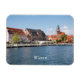 Este imán de recuerdo cuenta con una fotografía del puerto y el casco antiguo de Waren, Müritz, Mecklenburg Vorpommern, Alemania. El texto es personalizable o extraíble. Los imanes son un regalo ideal, o un regalo personal para pegar en su nevera o en su armario. Este imán mide 7,6 cm x 10,2 cm (3" x 4"), está hecho de un vinilo flexible que contornará con superficies curvadas, es resistente al agua y a la mancha e impreso con un color vibrante y completo. También hay un imán más grande, de tamaño 10,2 cm x 15,2 cm (4" x 6")