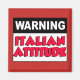 Warning Italian Attitude magnet. A great magnet for an Italian man or woman. Great gift idea for an Italian kitchen. Don't annoy this Italian cook!