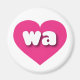 Este imán presenta un corazón rosa vivo y vibrante que contiene las letras fundas más bajas audaces, redondeadas y blancas, una versión juguetona de la abreviatura de Washington, el estado de siempre verde.