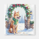Celebrate the season with this charming Christmas card featuring an Australian Kelpie beside a snow-covered countryside gate adorned with festive garland and bows. Painted in a warm watercolor style, this peaceful winter scene is perfect for dog lovers and pet parents. With a blank interior for personal messages, it’s ideal for holiday greetings, thoughtful gifting, and breed-inspired stationery collections.