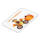 Whimsical bicicleta moto calcetín mono con calabaza grande naranja y personalizable texto de Acción de Gracias sobre fondo blanco