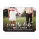 Brillante y elegante guardar el anuncio de la fecha con una foto con el guión blanco moderno de caligrafía