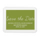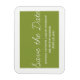 Whimsy Save the Date Magnet en verde oliva y blanco con un diseño de tipografía de escritura simple y divertido. Esta moda de guardar el imán de fecha es fácil de personalizar con los detalles de su boda. Para obtener más opciones de personalización, haga clic en el botón Personalizar.