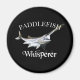 El diseño perfecto para los fanáticos de las medusas. Imagen detallada a todo color de un pez almendrado monstruo con el texto Paddlefish Whisperer.