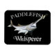 El diseño perfecto para los fanáticos de las medusas. Imagen detallada a todo color de un pez almendrado monstruo con el texto Paddlefish Whisperer.