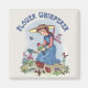 Adorable chica de jardín vintage retocado en capó de paja. Está plantando flores y tiene macetas de arcilla, bichos de jardín y mariposa cerca. El texto dice Flor Whisperer y es una deliciosa idea de regalo para una mujer jardinero.