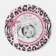 Impresión de chita con aspecto 3D rosa caliente arco de puntos de polka y imán de fotos de recorte de estampado de cebra.