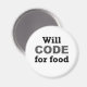 Will Code for Food imnet. ¿A quién no le gusta el humor geek de las computadoras? ¡Compra este imán gracioso para ti mismo o como regalo para ese programador especial de tu vida!
