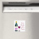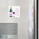 Magnate cuadrado lindo con gráficos de una botella de vino y vaso de vino con lectura de texto rojo, Comer, Beber y ser feliz. Pequeña y pequeña idea de regalo, a quién no le gustan los imanes de los refrigeradores.