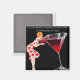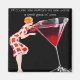 Magnet con la imagen vintage de una señora con una gran copa de vino y las palabras, por supuesto que el tamaño importa, nadie quiere un pequeño vaso de vino.