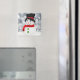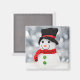 Magnet con una foto de un lindo muñeco de nieve en la nieve.