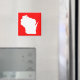Forma de mapa blanco del estado de Wisconsin contra rojo brillante. Crea tu propio diseño de temas políticos, o quizás para un equipo escolar. Puede agregar texto personalizado.