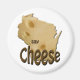 Un mapa gráfico de Wisconsin da forma al queso por el artista/diseñador Charmaine Paulson en un imán. El imán tiene el texto "Di queso". ©2012charmainepaulson. Por favor visite mi tienda para muchos más productos Wisconsin!