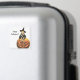 Una pequeña bruja se sienta encima de una calabaza en este gráfico vintage de estilo Halloween.