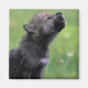 Un cachorro de lobo negro adorable aullando en la hierba.
