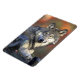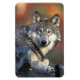 Magnet mostrado con una foto de un lobo en estado salvaje. Imagen de stock a