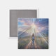 This inspirational magnet features an AI-assisted artwork from the Lila Faye Belle music video “The Ones Cast Aside.” A barefoot woman in blue jeans and a white T-shirt walks down a winding dirt road toward a radiant cross glowing in the sky. The rich, cinematic colors—vivid greens, blues, and warm golden light—capture the beauty of life’s journey under divine guidance.