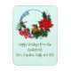 El ratón marrón lindo sobre una corona de Navidades. Ornamentos, poinsettias y nudos celtas azules trabajan en la corona de Navidades.
