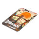 Afiche de viaje del puente Yasugi Japan Blossom y del jardín en un hermoso paisaje naranja.