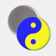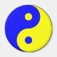 Yin Yang Magnet. Este imán está decorado con un símbolo Yin Yang azul y amarillo. "En la filosofía taoísta, el yin y el yang surgen juntos de una quietud inicial o vacío y siguen moviéndose en tándem hasta que se vuelva a alcanzar la quietud. Por ejemplo, colocar una piedra en una piscina de agua tranquila elevará simultáneamente las olas y los bordes inferiores entre ellas, y esta alternancia de puntos altos y bajos en el agua irradia hacia afuera hasta que el movimiento se disipe y la piscina vuelva a estar tranquila. Yin-yang, por lo tanto, siempre tiene cualidades opuestas e iguales. Además, cada vez que una calidad alcanza su punto máximo, naturalmente comenzará a transformarse en la calidad opuesta: el grano que alcance su altura completa en verano (yang) producirá semillas y morirá en invierno (plenamente yin) en un ciclo interminable" - Wikipedia. Una gran idea de regalo.
