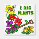 Yo cavo plantas, divertido jardinero diciendo con margarita floreciente, girasoles y violetas en rojo, amarillo y morado, con una abeja, una perra y una pala. Ideal para la jardinería o la lectura de catálogos de semillas por parte de GardenPages