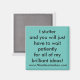 ¡Revelar el relleno en tu frigorífico, tu archivador y donde sea que puedas pegar un imán! Texto: ¡Me muevo y solo tendrás que esperar pacientemente por todas mis ideas brillantes! En un fondo de color verde agua (el color de la conciencia que se agota).