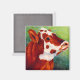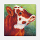 Un jóven becerro rojo y blanco le da la vista a este bonito imán de vaca. Este imán de vaca es parte de una serie de arte que incluye varias razas de vacas.