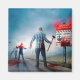 SlipperyJoe's feliz Halloween brillantes ojos zombis brote señal de cuarentena figura de sobreviviente masculino está en primer plano infección por gases máscara aviones aterrizar manchas de sangre misteriosas figuras post-apocalípticas mundo infectado zombie armado con martillo para combatir artística tormenta oscura paisaje desolado LGBTQIA regalos de orgullo gay