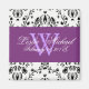 Imanes de boda con monograma Damask en negro y blanco, imán de fecha de guardado. Se puede agregar color de fondo. Hermoso tono de púrpura, casi ciruela / lavanda, como acento. Copyright © 2009 PixDezines.com y PixDezines en zazzle.com