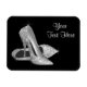 Hermoso zapato de tacón alto negro y plateado plantilla de imán. Puede agregar fácilmente su texto, nombre u otro mensaje, y también eliminar el texto en este elegante zapato de tacón alto negro y dorado imán simplemente agregando los detalles de su evento, estilo de fuente, tamaño y color de la fuente, y redacción. Tenga en cuenta que todos los imanes, tarjetas y diseños de invitaciones que encontrará en Zazzle son gráficos impresos sin joyas reales, lazos, partes o piezas en relieve, estampados o agregados.