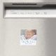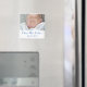 Imán de foto para anuncio de nacimiento de niño azul y blanco.