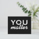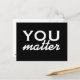 Postal de carácter astuto y motivacional con palabras anónimas, "importas". Inspirado, inspirador y inspirador, así como motivador y motivador. Nunca lo olvides.