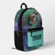 Mochila colorida de un astronauta surfista en el espacio. El texto del marcador de posición dice: "¡ALMACENADO!", pero puede actualizarse según lo que considere oportuno. ¡Hace una gran bolsa de libros!
