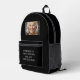 Honra a un ser querido con esta mochila negra de personalizado "en memoria" y de texto, que muestra espacio para una foto y un texto personalizado. Ideal para carreras benéficas, caminatas conmemorativas o eventos de concienciación que apoyen causas como el cáncer, la demencia u otras enfermedades. Una manera sincera de mostrar apoyo a una organización benéfica y recordar a alguien especial.