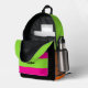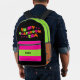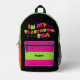 Esta divertida mochila presenta una combinación de colores verde, naranja y rosa con un poco de negro mezclado. El diseño de la tipografía tiene letras onduladas para las palabras "En la era de mi aula". Esta es una gran mochila para profesores y estudiantes por igual. Derechos de autor Kathy Henis