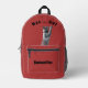 Gato blanco y marrón llegando del bolsillo exterior. El texto curvo de arriba dice "Mee... Owt" Personaliza con el nombre en el bolsillo.