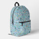 Mariposas dibujadas a mano, pájaros, flores y hojas en muchos colores sobre un fondo azul acuático con acentos negros.