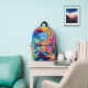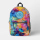 Esta impresionante mochila presenta un diseño magnífico creado a partir del alcohol y la tinta en tonos azules, naranjas, rosados y morados. Personalice con sus iniciales utilizando la plantilla proporcionada para que sea única suya.
