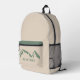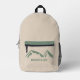Si te gusta hacer caminatas, mochileros y aventuras al aire libre, consigue esta mochila marrón claro con montañas verdes y texto de personalizable.
