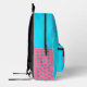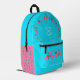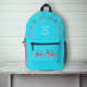 Mochila de chicas divertidos con azul acuático brillante. Los flamencos rosas decoran la parte trasera y la parte de bolsillo. Añada su primer monograma inicial a la parte posterior. La pequeña estrella de mar azul a los lados hace juego con la estrella de mar a los pies de los flamencos.