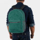 Mochila verde azulada profunda con una impresión de hojas de color sólido