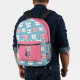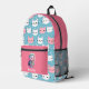 Impresa Mochila de patrón de gato blanco y rosado