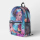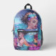 Sirena acuática en la mochila marina. Esta acuarela tiene mucho azul y rosa. El fondo tiene olas oceánicas y un cielo colorido. La sirena lleva el pelo puesto con una cabecera de flores. Sumergirse en el estilo con nuestra mochila de sirena! Lleva tus elementos esenciales sin esfuerzo mientras abrazas tu criatura marina interior. ¡Perfecto para los amantes de las sirenas!